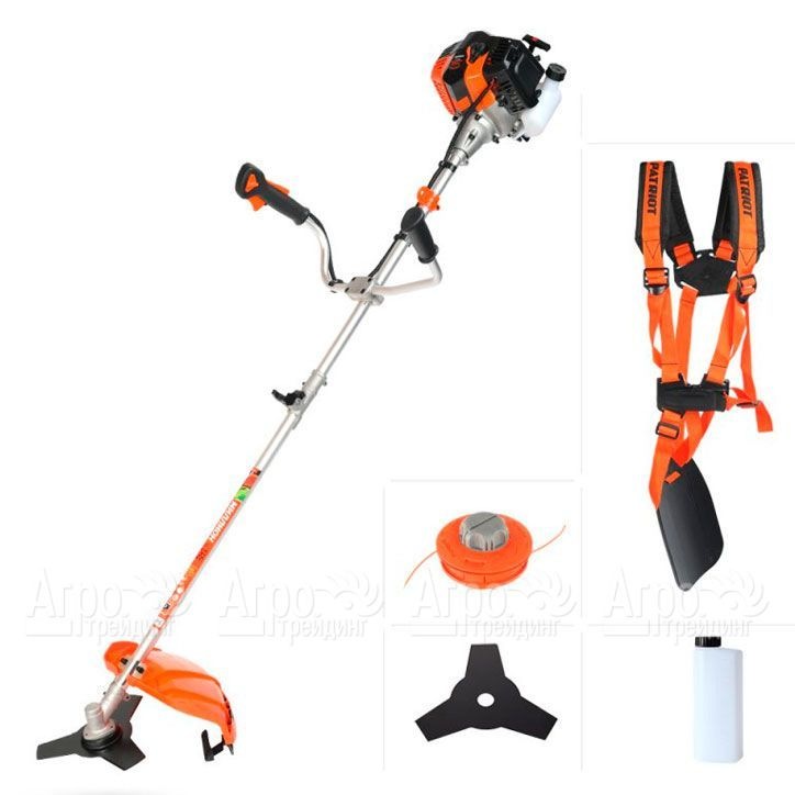 Характеристики товара: Бензокоса (бензиновый триммер) Patriot PT 4355 ImperialПодробное описание товараНовая бензокоса (бензиновый триммер) Patriot PT 4355 Imperial - мощный, высокопроизводительный и надежный инструмент, разработанный на базе модели триммера Patriot PT 4355, который имеет целый ряд преимуществ в отличие от предыдущей модели. Использование системы Easy Start обеспечило облегченный запуск двигателя бензокосы (бензинового триммера) Patriot PT 4355 Imperial. Инструмент имеет эргономичный дизайн и повышенную жесткость благодаря увеличению толщины соединений деталей с пластиком внутри корпуса. Вентиляционные отверстия приобрели более оптимальную форму, что обеспечило эффективный обдув двигателя, не допускающего его перегрева при интенсивной эксплуатации. В инструменте улучшена система амортизации, которая позволила в разы снизить вибрационное воздействие на оператора. Эргономичный Т -образный руль характеризуется усиленной базой крепления. Все изделия серии Imperial оборудованы металлической чашкой сцепления. Надежный трансмиссионный вал с соединением звездочка, имеет усиленную соединительную муфту и вращение в опорах скольжения. Разборная штанга обеспечивает удобство в транспортировке или хранении инструмента. Для комфортной работы, инструмент используют с ранцевой оснасткой на оба плеча, которая имеет противовибрационную защиту и оптимально распределяет весовую нагрузку. Изделие комплектуется несколькими видами режущих насадок - катушкой с леской с полуавтоматическим режимом подачи корда, трехлопастным ножом и 3Т диском, позволяющими косить не только сорную траву, но и справляться с порослью кустарников или деревьев.