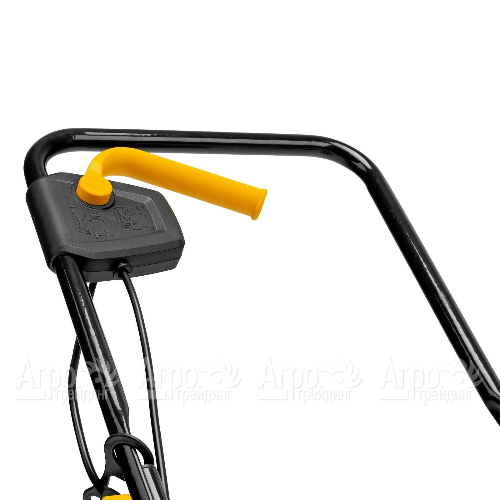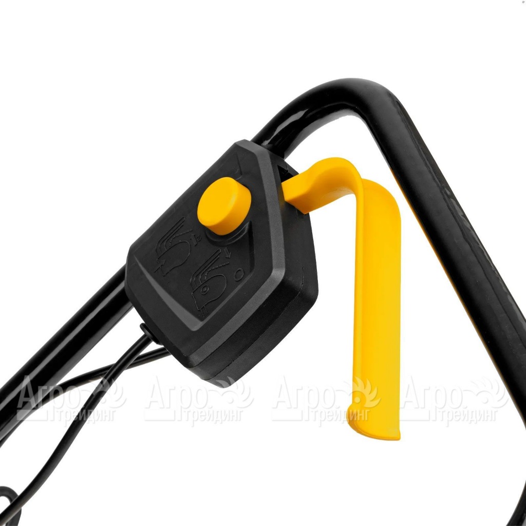 - Безопасность - функция блокировки предотвращает неожиданный запуск двигателя, в то время как держатель кабеля минимизирует риск попадания кабеля под режущий нож.