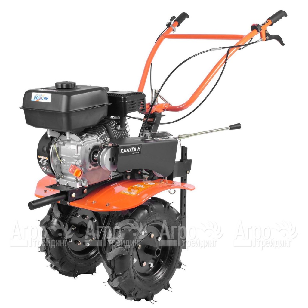 Характеристики товара: Мотоблок Patriot Калуга М (пониженная передача)Подробное описание товараМотоблок Patriot Калуга М (пониженная передача) славится повышенной производительностью и многофункциональностью, за счет чего обеспечивается эффективность при обработке массивных участков. Наличие пониженной первой передачи способствует комфортной эксплуатации техники. Также для удобства пользователя предусмотрена регулируемая рукоятка. Возможность уверенного передвижения по различным почвам достигается благодаря улучшенным пневматическим колесам. В свою очередь, предотвратить попадание земли на пользователя позволяют специальные брызговики. Важным преимуществом модели является наличие широкой горловины у топливного бака – для простоты заправки. Эксплуатировать агрегата на тяжелых грунтах удается за счет закаленных фрез, которые предусмотрены в конструкции мотоблока.